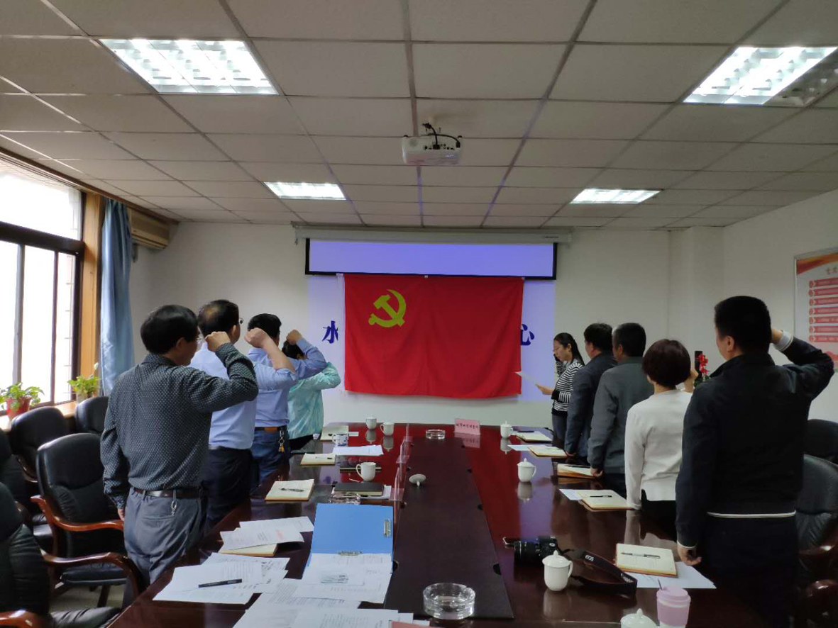2019年5月8日,水工環中心第一黨支部在四樓會議室召開了黨員大會,開展了一次新黨員入黨宣誓和老黨員重溫入黨誓詞活動。宣誓儀式在雄壯的《國際歌》聲中拉開帷幕。全體黨員舉起右手,握緊拳頭,面對鮮紅的黨旗鄭重宣誓:“我志愿加入中國共產黨,擁護黨的綱領,遵守黨的章程……”。一句句誓詞雄壯豪邁,一聲聲誓言鏗鏘有力。